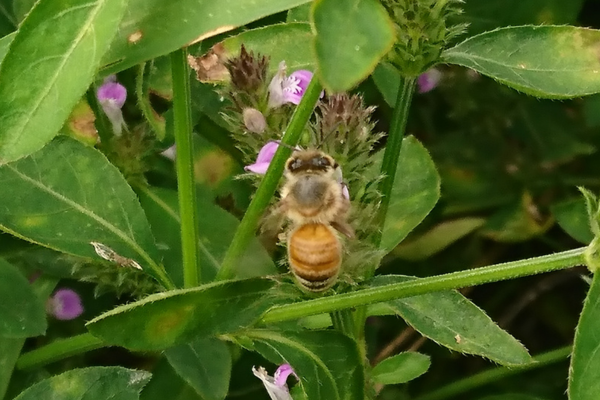 二ホンミツバチに似るが、黄色っぽいのでセイヨウミツバチに見える