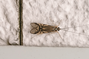 川虫の成虫 コンビニの壁