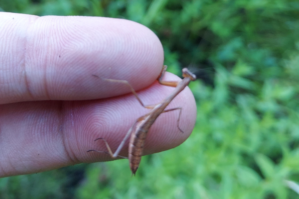 ヒメカマキリの幼虫に似るが、中足の節に突起がないことで区別できる。