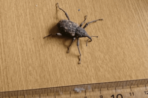 集落内の道路で動かない昆虫を発見 「これなに?」 甥っ子が見つけてきたのはオオゾウムシ