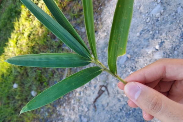 ネザサ 2025年8月2日 2025-10-07 最終更新日時 : 2025-10-07 field-note 蒜山を散策中に植物に詳しい学生が教えて 「これネザサですよ」 「ん、どこを見たらわかるの?」 「ネザサは葉の付け根に白い髭みがいなのがあるんです。」 他の写真 葉の付け根に白い髭のようなものが見えるだろうか? この髭がネザサの特徴らしい \ 最新情報をチェック / Facebook