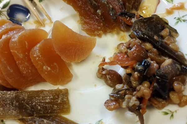 Due to the physical labor in agriculture, meals with high salt content were preferred. Dishes like "shōkemeshi" and "narazuke" (pickled vegetables) are characteristic of Japanese countryside cuisine. They are typically seasoned with soy sauce, sugar, and sake, resulting in a sweet and salty flavor.