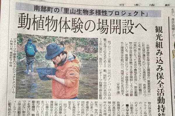 - 日本海新聞(2023.1.18) 田んぼビオトープなど評価 南部町の里地里山 自然共生サイト「認定相当」