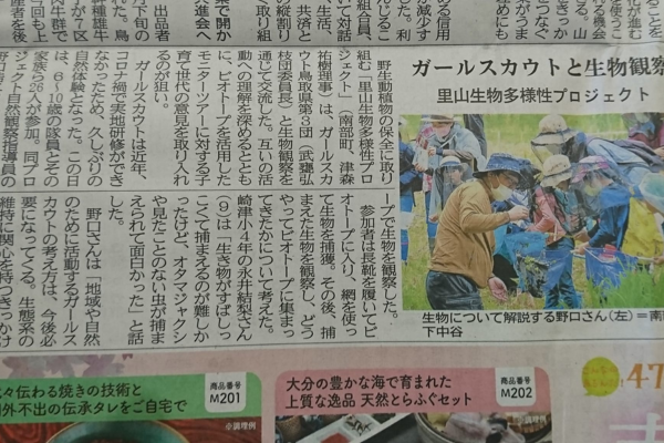- 日本海新聞(2024.8.7) 多様な生物、理解深めて 南部町で観察会 高校生15人、採取や調査