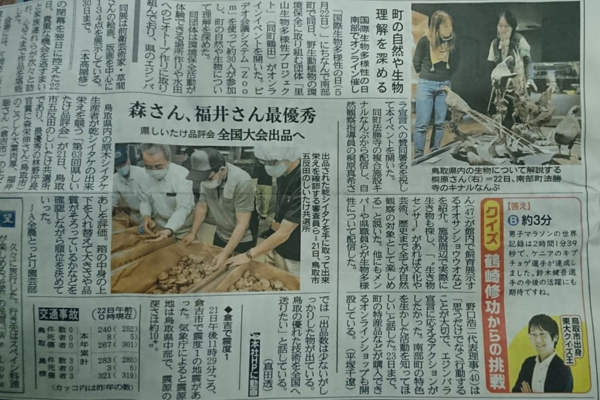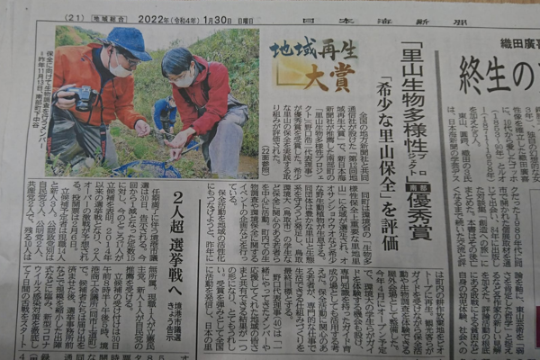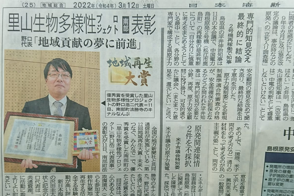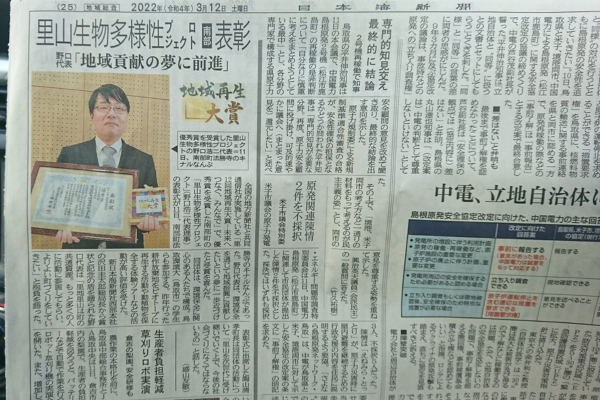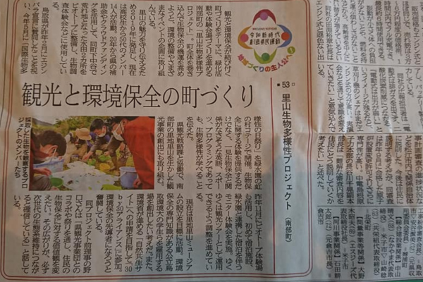 - 47NEWS(2021.10.17)鳥取県南部町:里山生物多様性プロジェクト(第12回地域再生大賞)