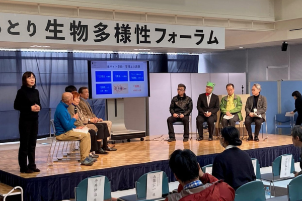 鳥取コナン空港にて、生物多様性の保全に向けて自然共生サイトの制度と県の推進体制を周知するためのフォーラムを開催されました。鳥取県の自然共生サイトとして活動を報告しました。